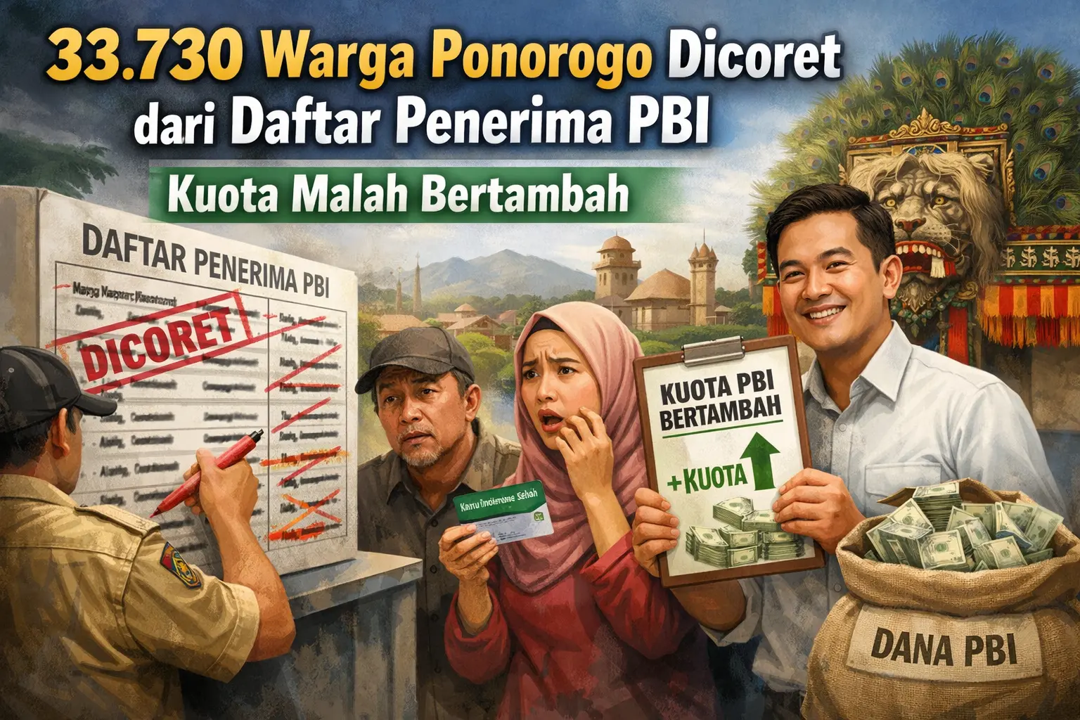 PONOROGO, GArudasatunews.id — Kementerian Sosial RI menonaktifkan 33.730 peserta Penerima Bantuan Iuran (PBI) Jaminan Kesehatan di Kabupaten Ponorogo mulai 21 Januari 2026. Pencoretan dilakukan setelah pemutakhiran data kesejahteraan sosial menunjukkan para peserta tersebut kini berada di atas kriteria penerima bantuan.
