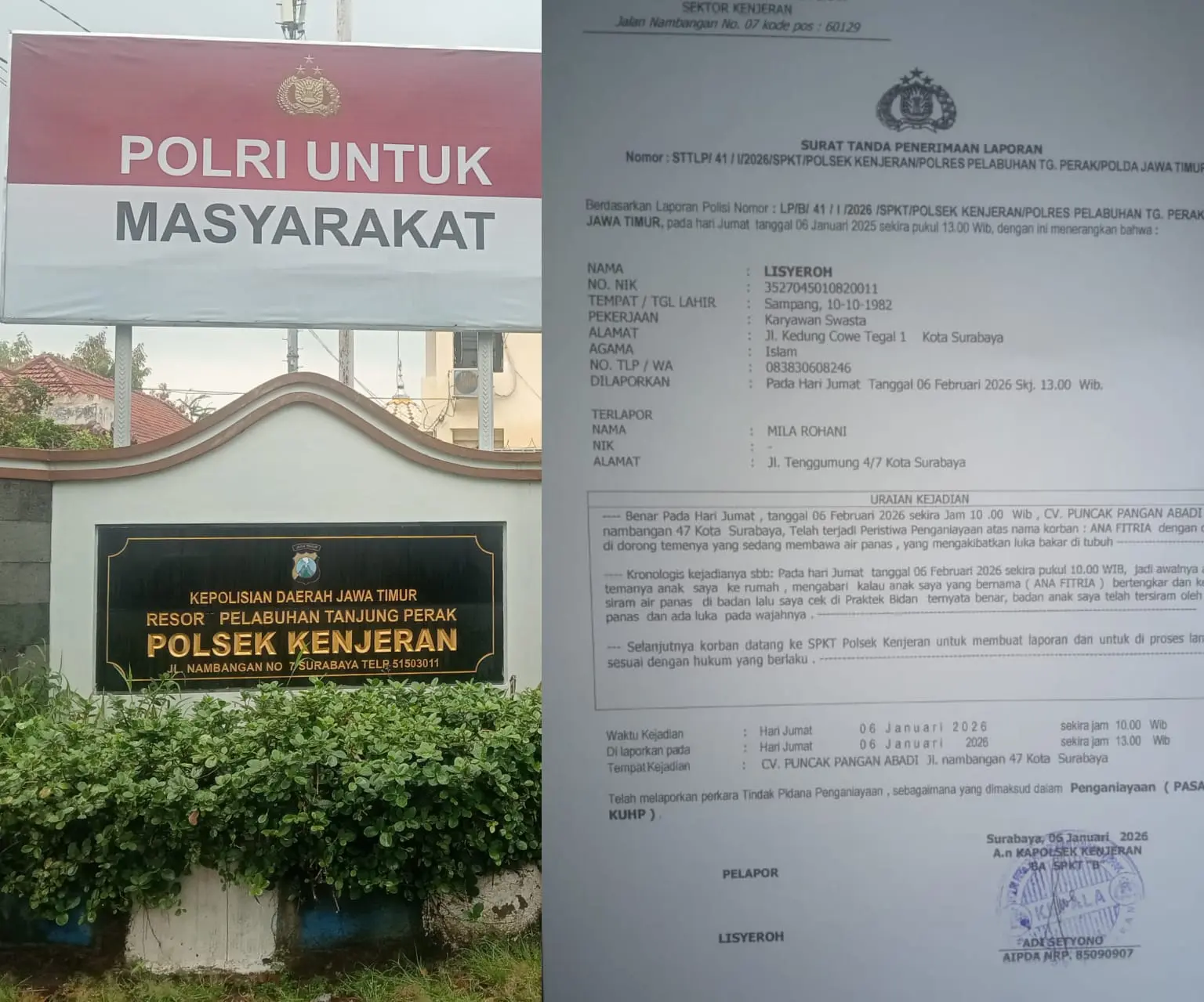 Berdasarkan laporan kepolisian (LP) nomor : LP/B/41/I/2026/SPKT/Polsek Kenjeran/Polres Pelabuhan Tanjung Perak-Polda Jawa Timur, Pada Hari Jumat 06 Januari 2026, sekitar pukul 13.00 Wib (siang hari), Lisyeroh selaku orang tua korban (Ana Fitria) warga jln Gedung Cowek Tegal 1, melaporkan atas peristiwa penganiayaan terhadap anaknya ke Polsek Kenjeran (red), Wilayah Hukum Polres Tanjung Perak (KP3), awak media mencoba mengkonfirmasi keluarga Korban yakni Lisyeroh selaku orang tuah korban mengatakan, Penganiayaan tersebut terjadi di jln Nambangan No : 47, tepatnya CV. Puncak Pangan Abadi dimana dia (Ana Fitria) bekerja,” ucapnya.