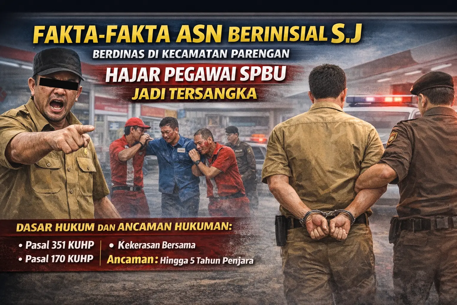 TUBAN, Garudasatunews.id – Sujarwo, oknum aparatur sipil negara (ASN) yang berdinas di Kecamatan Parengan, resmi ditetapkan sebagai tersangka kasus dugaan penganiayaan terhadap empat pegawai SPBU di wilayah Parengan, Kabupaten Tuban. Kasus ini memicu sorotan publik setelah rekaman CCTV insiden tersebut viral di media sosial.