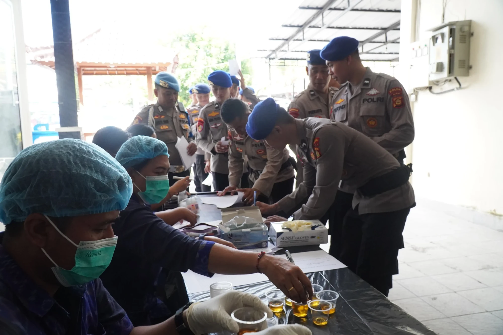 Tak hanya itu, seluruh personel Ditpolairud Polda Bali diwajibkan melaksanakan tes urine. Kali ini, Bidpropam menggandeng Biddokkes Polda Bali dalam pemeriksaan urine untuk mencegah adanya penyalahgunaan narkoba.