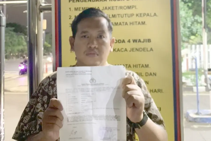 Arnofyan Pratikna usai membuat laporan di Polda Jatim. Foto: istimewa