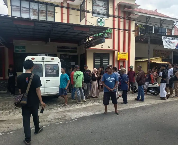 Warga mengerumuni Puskesmas Jambon yang ingin melihat 4 korban.