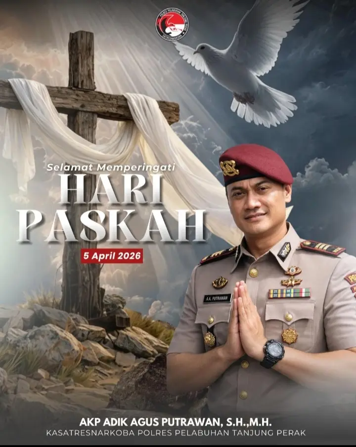Sebagai Kepala Satuan Reserse Narkoba di Polres Pelabuhan Tanjung Perak (KP3), AKP Adik Agus Putrawan, S.H., M.H., mengajak masyarakat untuk menjadikan Paskah sebagai momen memperkuat nilai-nilai keimanan, kedamaian, dan harapan baru dalam kehidupan sehari-hari,” ucapnya.