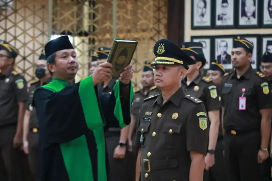 Upacara pelantikan beserta pengambilan sumpah jabatan berlangsung khidmat di Aula Kejari Surabaya, dihadiri oleh para kepala seksi, jaksa, dan seluruh pegawai lingkup Kejari Surabaya.