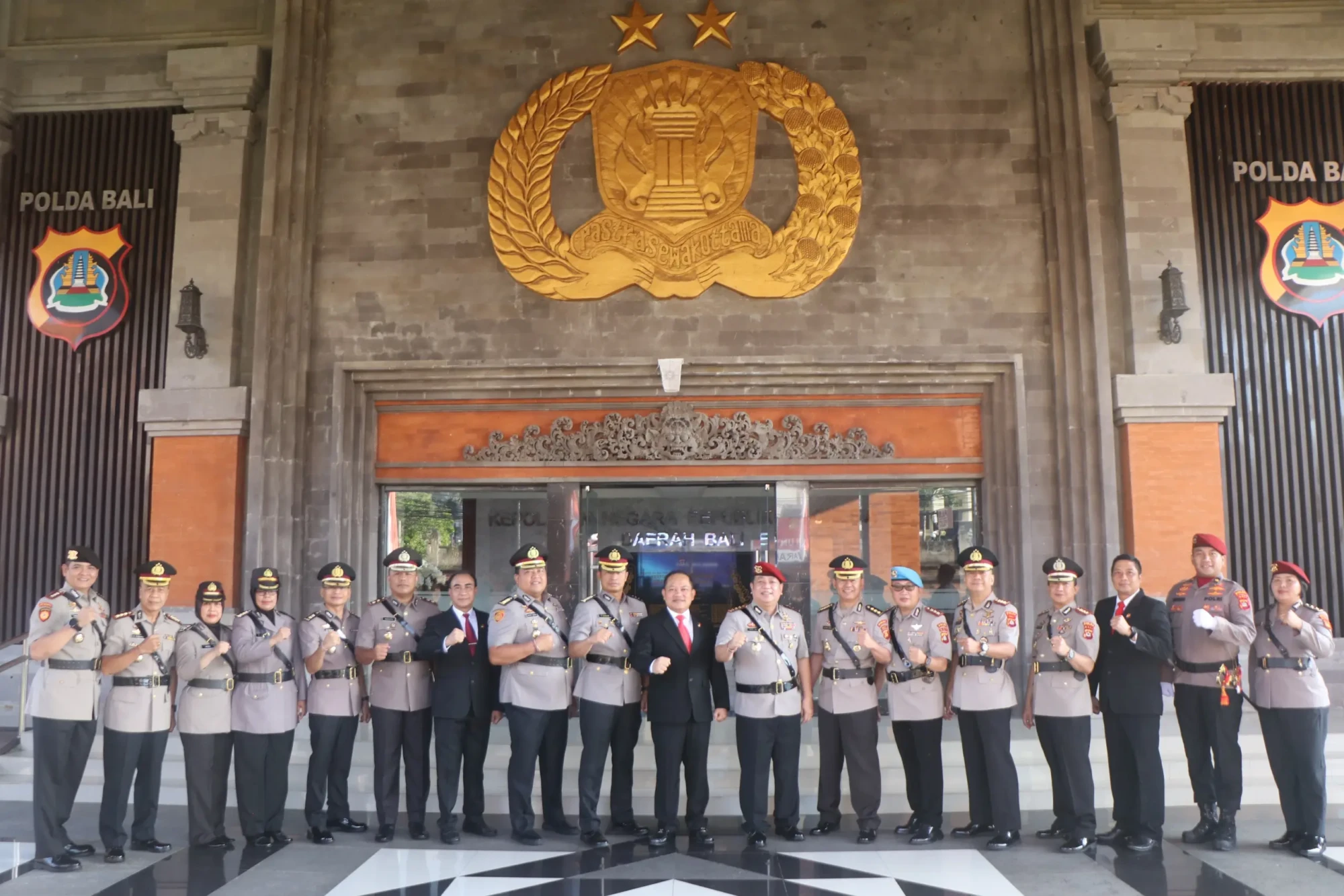 “Di bawah kibaran bendera Merah Putih, sekitar 250 orang anggota Kesatuan Polisi Istimewa berkumpul di halaman depan markas Polisi Istimewa membacakan Proklamasi Polisi sebagai bentuk kesetiaan Polisi Istimewa kepada Negara Republik Indonesia,” ujar Kabid Humas Polda Bali.