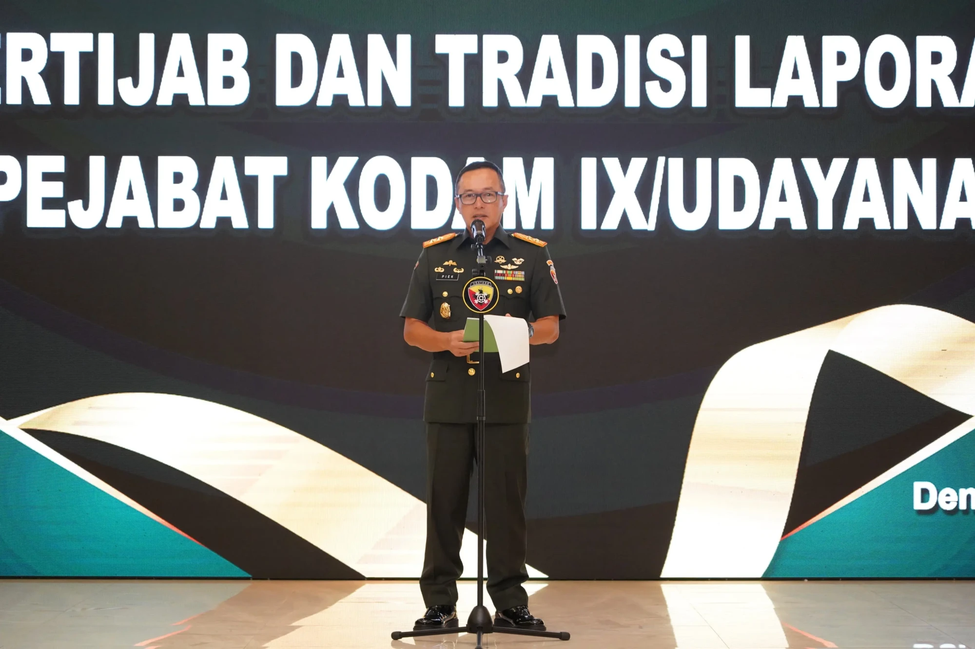 Denpasar, garudasatunews.id – Pangdam IX/Udayana, Mayjen TNI Piek Budyakto, S.H., M.H., memimpin langsung upacara Serah Terima Jabatan (Sertijab) dan Tradisi Laporan Korps pejabat Kodam IX/Udayana yang berlangsung khidmat di Aula Supardi Makodam IX/Udayana, Jalan Udayana No.1, Denpasar, pada Kamis (19/6/2025).