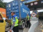 Petugas menegur pengemudi truk yang menggunakan lajur kanan secara terus-menerus.