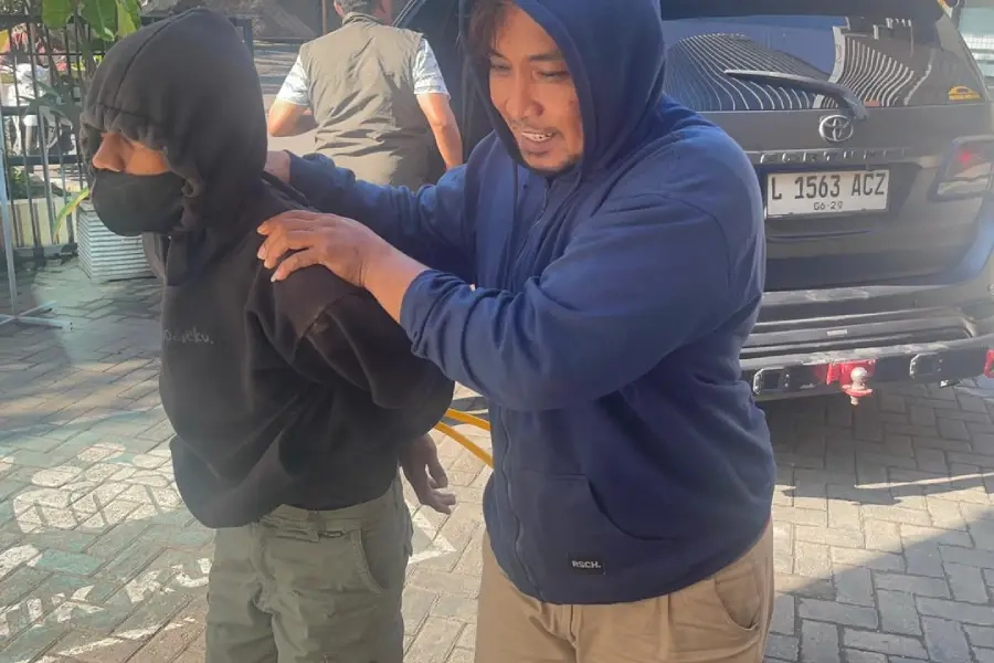 Salah satu pelaku (kiri) saat dibawa ke Polsek Sukolilo.