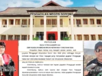 Sementara itu dalam Pokok Perkara, Majelis Hakim berpendapat bahwa gugatan Penggugat harus ditolak. “Menimbang, bahwa oleh karena dalil eksepsi Para Tergugat dipandang beralasan menurut hukum dan diterima, maka gugatan Penggugat haruslah dinyatakan tidak dapat diterima,” tulis Majelis Hakim dalam putusan perkara nomor: 57/Pdt.G/2025/PN Son.