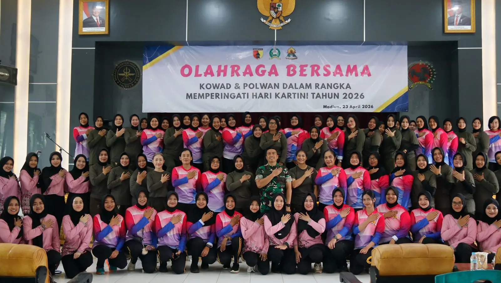 Madiun,garudasatunews.id|| Dalam rangka memperingati Hari Kartini, Kowad dan Polwan di Madiun menggelar olahraga bersama di Markas Yonif Para Raider 501/Bajra Yudha, Kota Madiun, Kamis (23/4/2026). Kegiatan diawali dengan senam bersama dan dilanjutkan dengan olahraga umum.