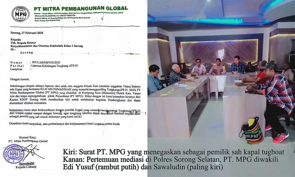 Pada pertemuan itu, kedua belah pihak bersepakat terkait pembayaran hutang PT. MPG yang akan dilakukan paling lambat pada hari Selasa, tanggal 15 April 2025. Juga disebutkan dalam surat perjanjian itu bahwa apabila Pihak II (PT. MPG) tidak membayarkan hak tersebut, maka kapal tugboat (kapal kecil penarik kapal besar – red) dan tongkang (kapal besar tanpa mesin – red) diserahkan dari Pihak II (PT. MPG) kepada Pihak I (Yesaya Saimar) sebagai kompensasi jaminan kepada masyarakat pemilik hak ulayat (Yesaya Saimar).