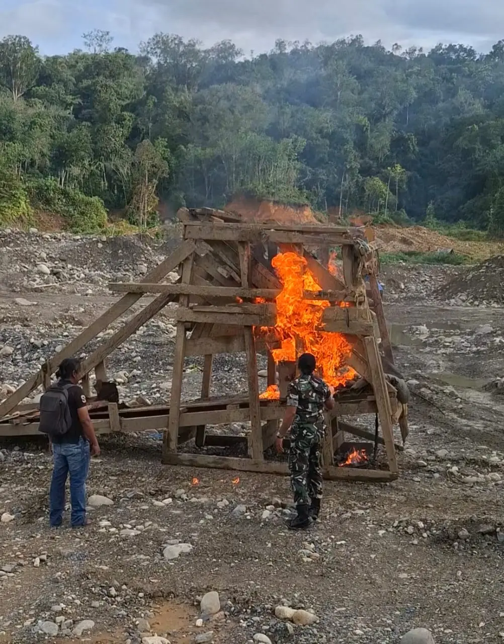 Tak hanya itu, personel juga turut membakar beberapa peralatan penyaringan emas di lokasi. Hal itu dilakukan agar para pelaku tidak lagi kembali melakukan aktivitas penambangan.